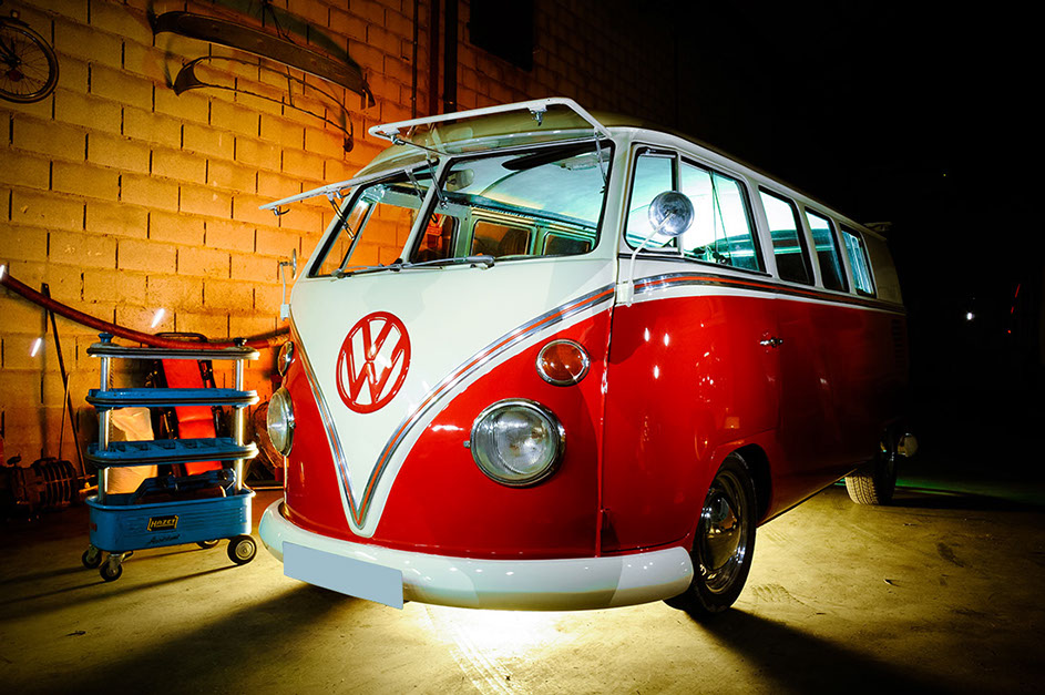 Disponemos de "VW T1 11 ventanas" totalmente restaurada (del año 1965), para darle un toque original a vuestros eventos, tales como bodas, publicidad, sesiones fotográficas, etc. El servicio de alquiler incluye chófer.